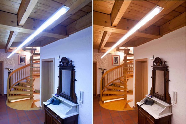 Холодное освещение, напротив, заставляет холодные цвета стать ярче и лучистее, а вот теплые в этом случае блекнут. Уходящие в прошлое лампы накаливания имеют желтый теплый свет, а энергосберегающие могут вести себя по-разному, поэтому на их упаковке всегда указано, какой именно свет производит лампа. Галогенные лампы менее всего изменят цвет вашего интерьера, ведь они дают белый свет, близкий к естественному дневному. Кстати, в магазинах обычно установлены именно галогенные лампы.