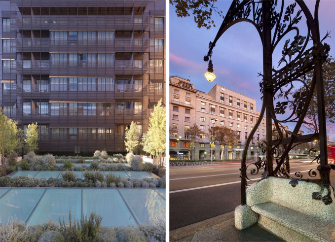 Здание Mandarin Oriental Barcelona с панорамной террасой и бассейном на крыше построено в современном элегантном стиле середины ХХ века с элементами модернизма, а внутренний сад отеля располагает к неспешному созерцанию.