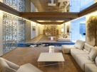 Яркий акцент интерьера отеля – общественные пространства, выполненные в стилистике авангарда с применением пластика, стекла и золочения. Чего стоит один декор лобби: ажурная сетка из белого пластика!