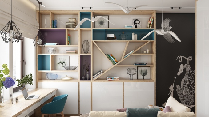Декор здесь призван придать "характер" интерьеру. Декоративные панно на стенах, постеры, цветы, фото в рамках и прочие "безделушки", призваны явственно рассказать "историю" разносторонних обитателей этого пространства.