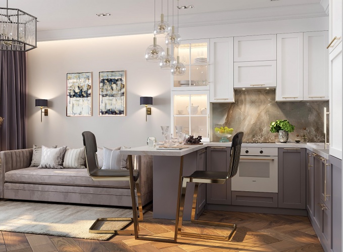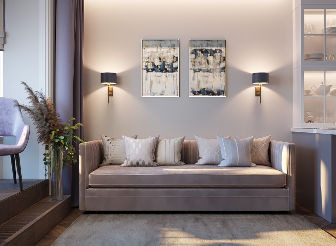 Цвет спелой оливки и распустившейся сирени стали нашими отправными точками при создании общей концепции - гармоничного сочетания благородных оттенков в отделки стен, мебели и материалов.