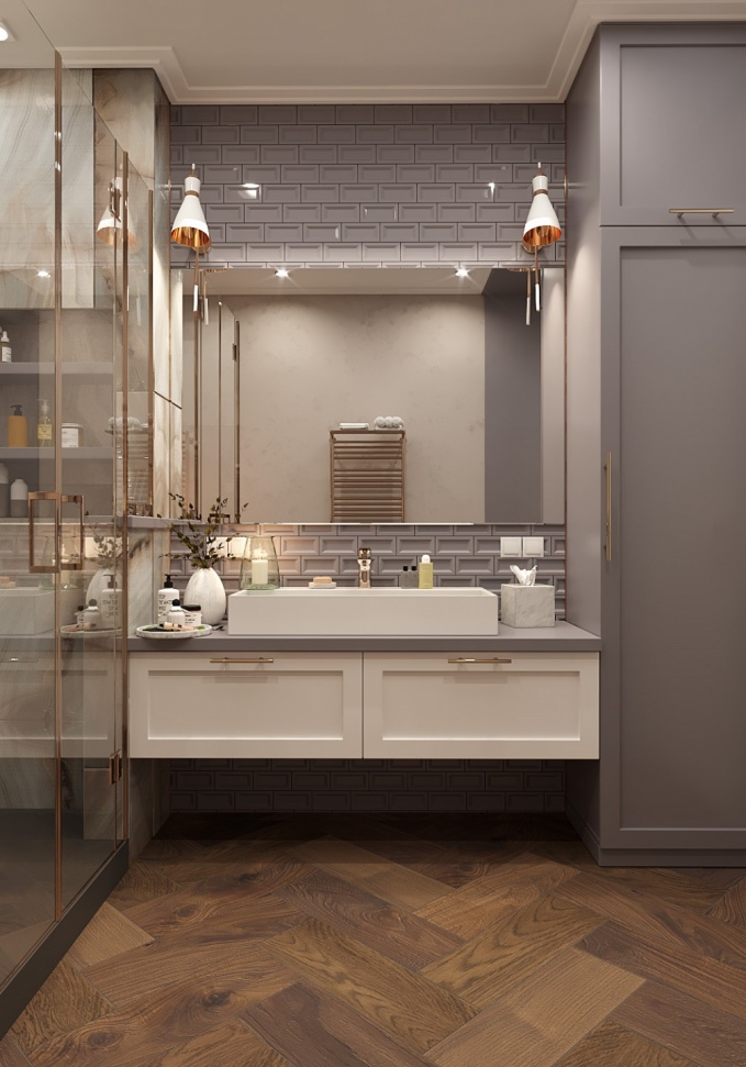 Интерьер отражает самовыражение заказчицы и её индивидуальный образ. Что косается стиля, то цель состояла в создании интерьера, который будет актуален долгие года, при этом оставаясь современным и элегантным.