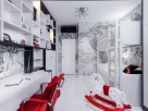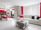 Эпатажный минимализм. Нейтральный светлый фон, энергичные акценты красного цвета и необычные декоративные фактуры - вот те опорные моменты, которые делают этот интерьер эмоционально выразительным.