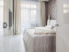 Вся основная отделка – различные оттенки белого, и только натуральные материалы. В прихожей и кухне на полу - керамогранит Аpavica, RENDERING DECOR, а в гостиной и зоне спален - массивная доска Maestro от «Корона Экзотик» из выбеленного дуба с серебряными прожилками. На стенах в прихожей, кухне-столовой и гостиной –декоративная штукатурка Baldini с необычным эффектом мятой бумаги. Поскольку благодаря перепланировке появилось большое отрытое пространство, мы уделили особое внимание зонированию. Для этого использовали разные материалы, контрастирующие по фактуре, и встроенные светильники от Centrsvet.