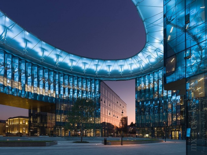 Световой день в Москве длится всего несколько часов более полугода. А значит, с середины дня и до утра за красоту архитектуры отвечает подсветка. Без нее богатство замысла, воплощенное в облике здания, никому не видно. Кампус МГТУ, архитектурный проект ТПО «ПРАЙД», Сергей Кузнецов, стал не только местом обучения, проживания студентов и проведения исследований, но и частью города. В отличие от традиционных университетских структур, которые чаще всего проектируются закрытыми.