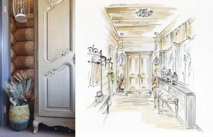 Основа интерьера — свободная интерпретация Прованса, обогащенная элементами Шебби-шика (благородная состаренность, патина) и Колониального стиля (экзотические акценты, дух путешествий). Цель — избежать стилизаторства, добившись теплой, жилой атмосферы, где каждая вещь имеет историю.