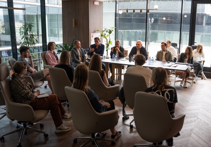 Об идеях, заложенных в архитектурной концепции бизнес-центра, и его конструктивных особенностях студентам рассказал создатель проекта Владимир Плоткин, главный архитектор и партнер-основатель ТПО «Резерв». Он отметил, что, работая над проектом, хотелось сделать что-то интересное, знаковое, заметное и достаточно яркое. С презентацией о современных трендах благоустройства общественных пространств в Москве выступил Сергей Худяков, главный архитектор проекта бюро SCAPE.