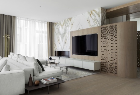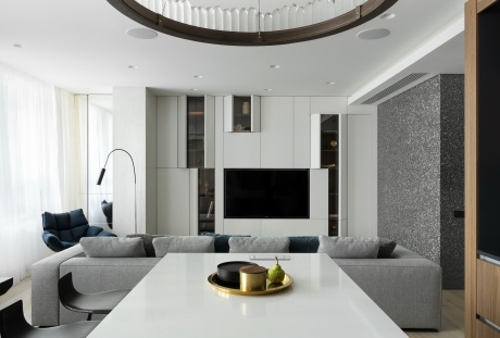 ритм геометрических линий и простых форм, поддержанный декоративными панелями и перегородками