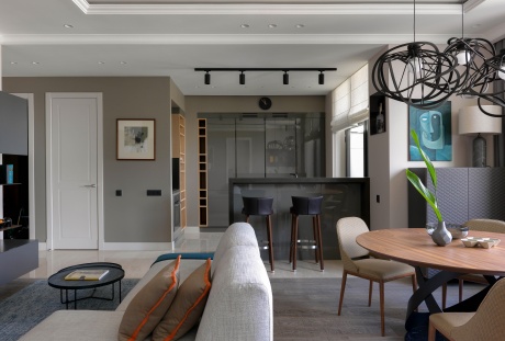 удобная эргономика с зоной для приема гостей и вечеринок и приватной территорией