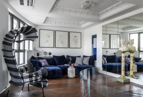 • микс из классики и современности как дань месторасположению квартиры в историческом доме на Патриарших