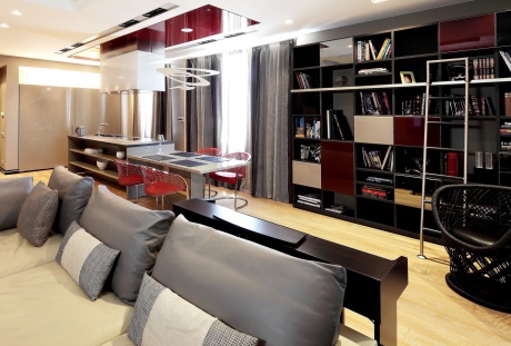 Модернистский интерьер с красными деталями