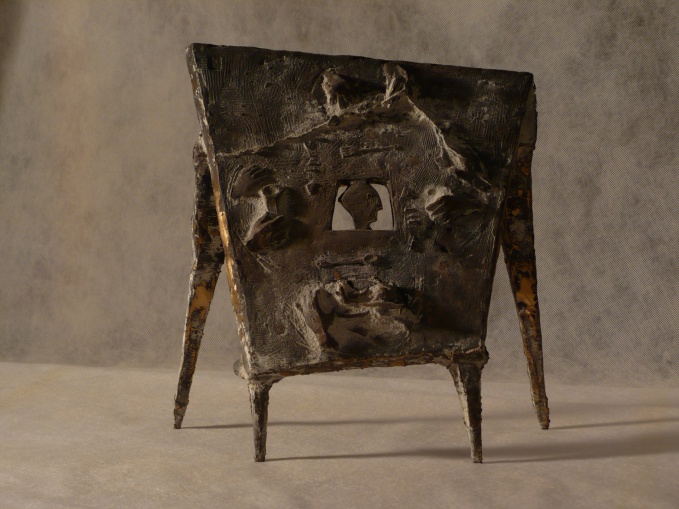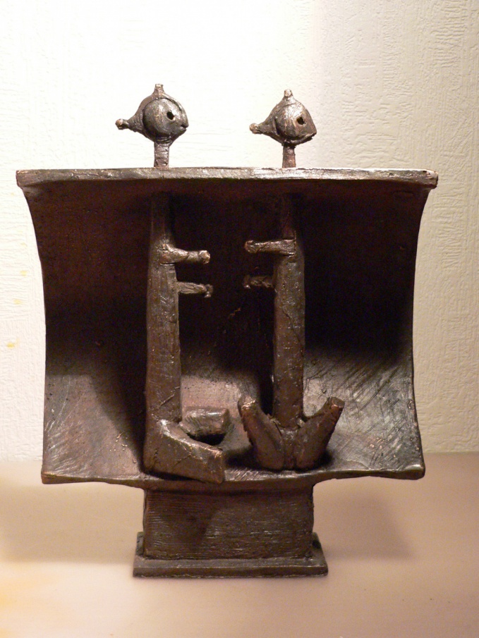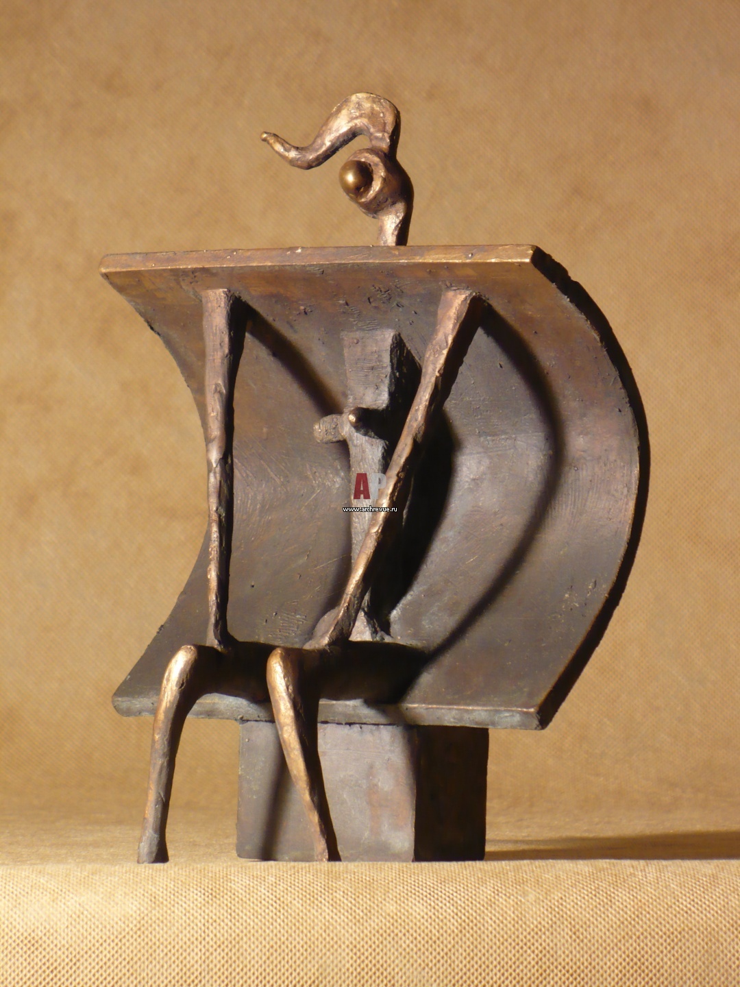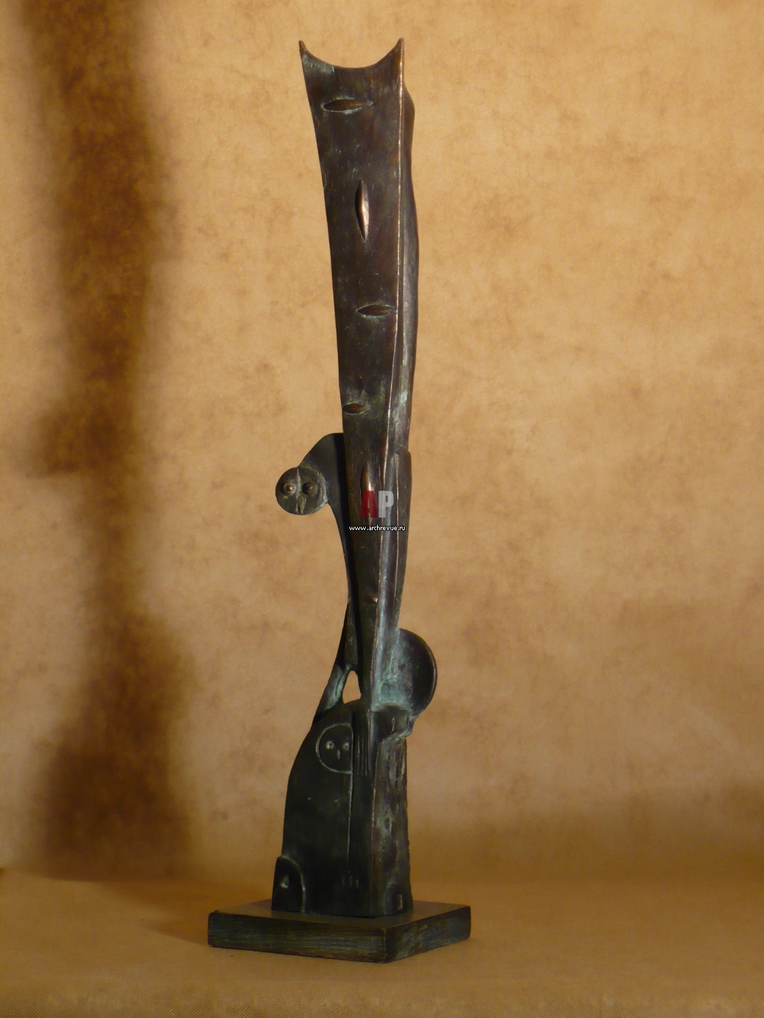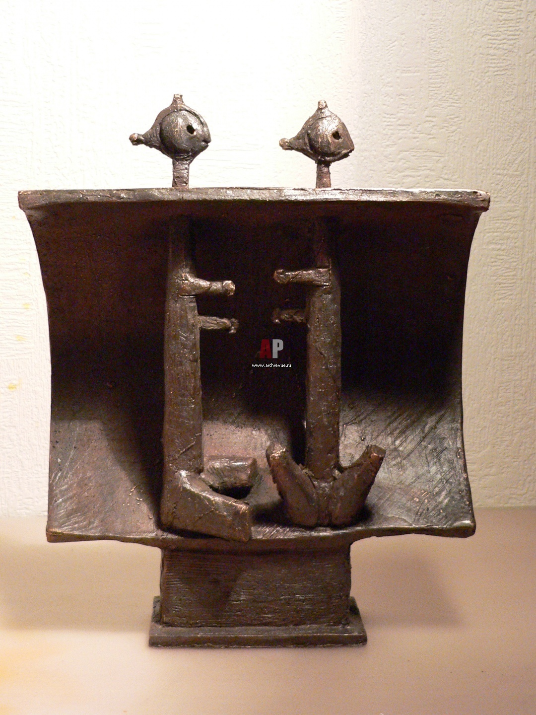 Застывшие формы создают ощущение иного пространства. Объект изображения зашифрован, отстранен, но считывается зрителем. Решая тему, скульптор стремиться к многозначности, объемности своих образов.