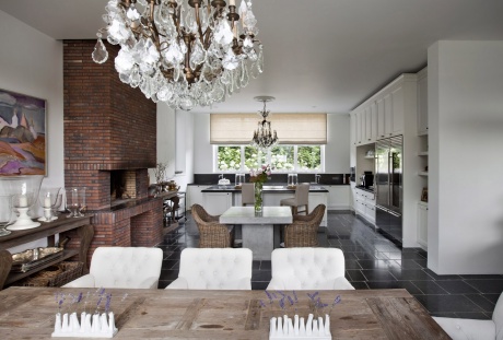 • традиционный кирпичный дом с современными интерьерами и фактурой дерева