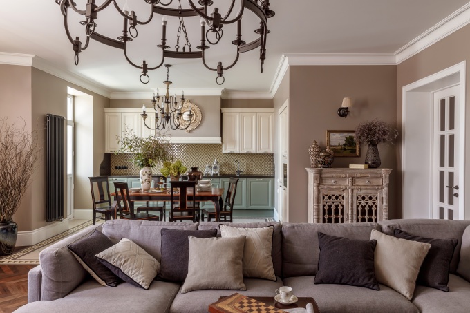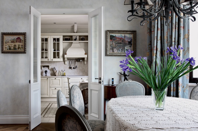 Заказчики обратились к декоратору Анне Павловой с пожеланием создать классический интерьер с историей. Но не пышный и парадный, а легкий, воздушный, камерный – в духе русской усадебной культуры и стилистики юга Франции. Декоратор предложила сместить акценты на серебристо-голубую цветовую гамму, состаренный паркет, белые столярные изделия, мебель в стиле французской классики и предметы искусства.