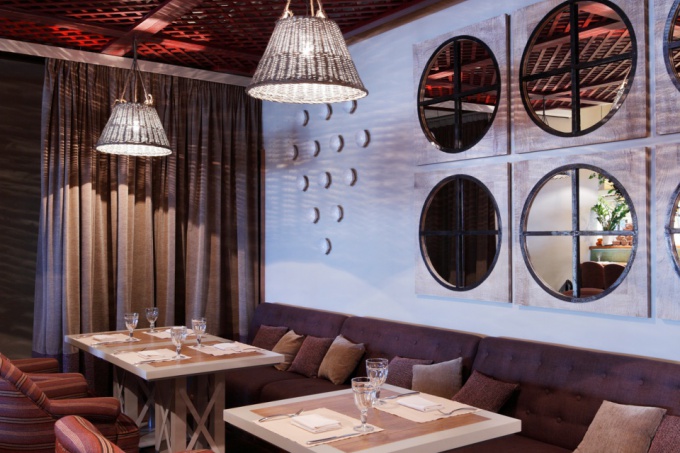 Концепция заведения – ресторан с полностью открытой островной кухней. Дизайн интерьеров основного зала выдержан в стиле большого гостеприимного дома вне привязки к определенной стране и эпохе.