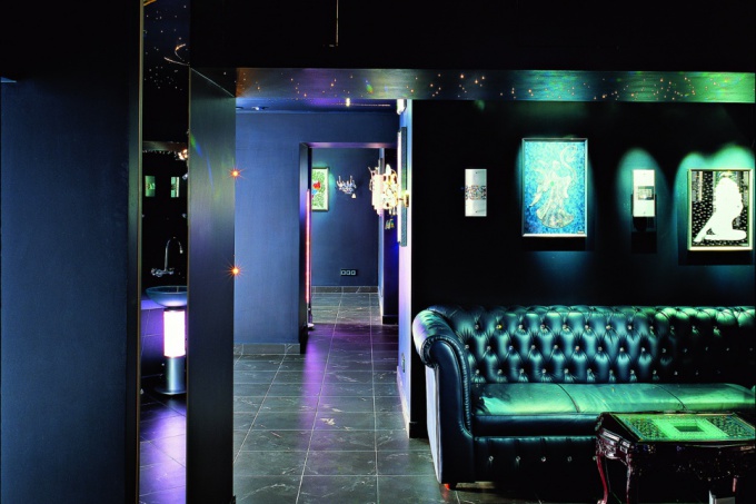 Перед архитекторами стояла задача в помещении с высокими потолками спроектировать салон-магазин, где представлены оптоволоконные светильники, люстры, панно и аксессуары из стразов Swarovski.