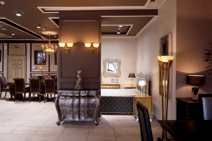 Архитекторам следовало создать грамотный антураж для экспозиции мебели компании «ТРИО-Интерьер» в классике и близкой к нему стилистике. Поэтому они решили пространство в неоклассическом ключе с традиционный деталями, создающими парадный настрой.