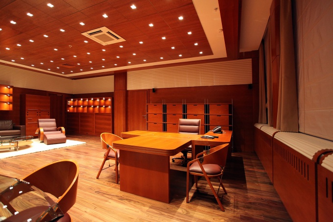 Представительский офис находится на последнем уровне отдельностоящего современного здания, внизу – четыре этажа рабочих пространств для рядовых сотрудников компании.
