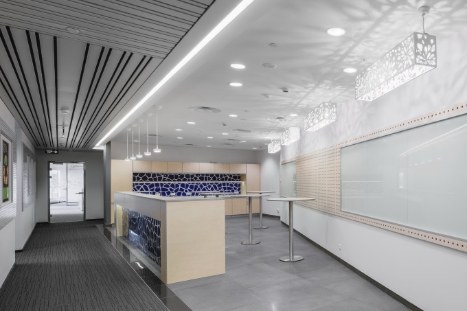 Не так давно корпорации изменила стандарты оформления рабочего пространства, которое теперь трактуется как место не только для работы, но и для жизни, что в итоге способствует росту производительности и повышению командного духа. Архитекторам следовало создать демократичное пространство с легкой и непринужденной атмосферой и разнообразными опциями, ориентированными на сотрудников. Проект реновации осуществлялся в рамах работающего офиса, без ущерба для рабочих циклов и процессов.