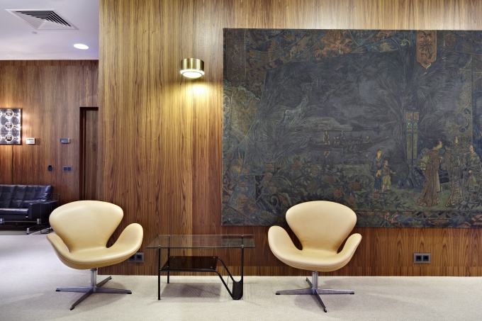 Питерское архитектурное бюро Archi-do (руководитель Вадим Кондрашев) спроектировало в центре Москвы представительский офис инвестиционного фонда Wooden Fish, интерьер которого погружает в атмосферу 1960-х годов. Авторы проекта использовали не только характерные для выбранного периода дизайнерские приемы и материалы, но и аутентичную мебель, а также предметы искусства.