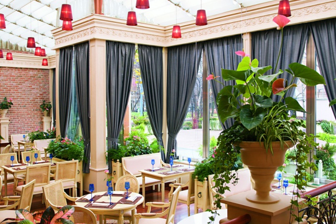 Помимо основного зала со сложным зонированием в ресторане есть VIP-зал, VIP-кабинеты и летняя веранда.