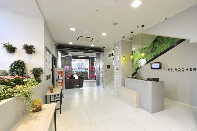 Проект салона красоты создан и реализован для международной французской косметической компании Yves Rocher. Набор помещений и общая дизайнерская линия разрабатывались в строгом соответствии с брендбуком и идеологической концепцией компании. В оформлении интерьеров акцент сделан на использование натуральных природных продуктов в косметической линии.