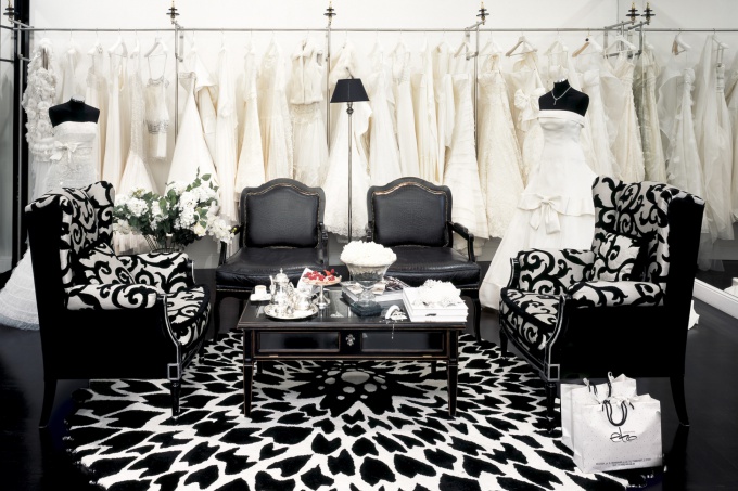 Интерьер салона свадебного и вечернего платья haute couture авторы проекта предложили оформить в беспроигрышной классической стилистике и черно-белой цветовой гамме. Сдержанный и одновременно элегантный интерьер – идеальный фон для роскошных, богато украшенных кружевом, вышивкой и стразами платьев.