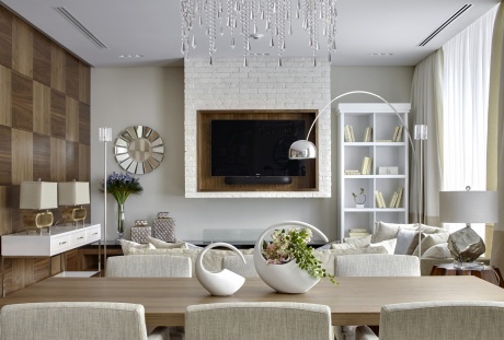 В любом интерьере с представительскими функциями аксессуары играют очень важную роль. Прежде всего, они помогают сформировать салонную атмосферу: аксессуары служат одновременно и в качестве декора (как стилистический и/или цветовой акцент), и в целях коммуникации (обсудить аксессуар – чем не тема для разговора). Эта элегантная квартира в стиле парадной итальянской неоклассики предназначена для временного проживания хозяев и приема гостей. Декоративная концепция дизайнера Юлии Маркос призвана деликатно подчеркнуть высокий статус интерьера – орнаментальная лепнина, художественные витражи, дворцовый паркет, большое количество аксессуаров в классическом и современном стилях. Все аксессуары - Charles.Cameron.