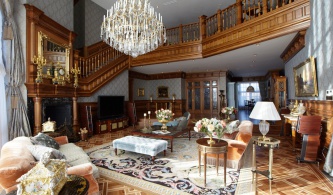 Архитектурный стиль этого жилого комплекса, выполненного в духе монументального классицизма, в значительной мере определил вкус владельцев квартиры – неудивительно, что дизайнер Ольга Кушнарева-Леоне получила заказ на парадную классику, совмещенную с современной функциональностью. В этом интерьере все соответствует генеральной идее оформления – избыточная роскошь расшитого вручную текстиля, масштабы использования декоративной лепнины, блестящее исполнение авторских изделий из дерева. Одно из центральных мест в интерьерной композиции занимает классическая американская мебель из массива дерева Century Furniture, предоставленная на проект салоном Charles.Cameron.