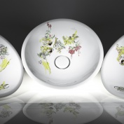 ДальшеРынок сантехники из полимеров постепенно расширяется, и итальянский бренд Glass Design делает красивое предложение в сегменте дизайнерских раковин для ванных комнат. Коллекция Pert (с англ. - задорный, игривый) названа именем полимерного материала. Pert сочетает низкий удельный вес с высокой механической прочностью, открывает широкие скульптурные и цветовые возможности для авторского дизайна. А венцом этого полимерного творения, пожалуй, можно назвать ярко-красную раковину на зеленом постаменте - модель Flower.